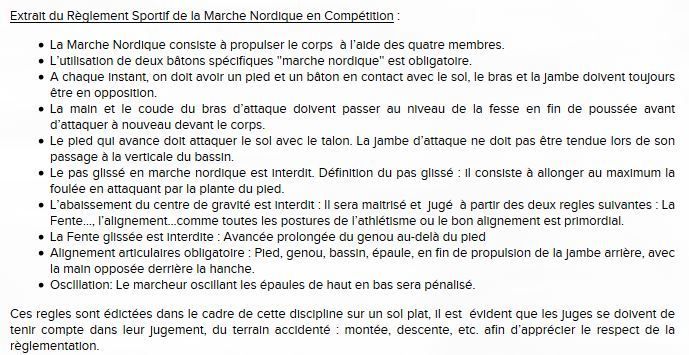 Extrait du règlement sportif de la la marche nordique en compétition.